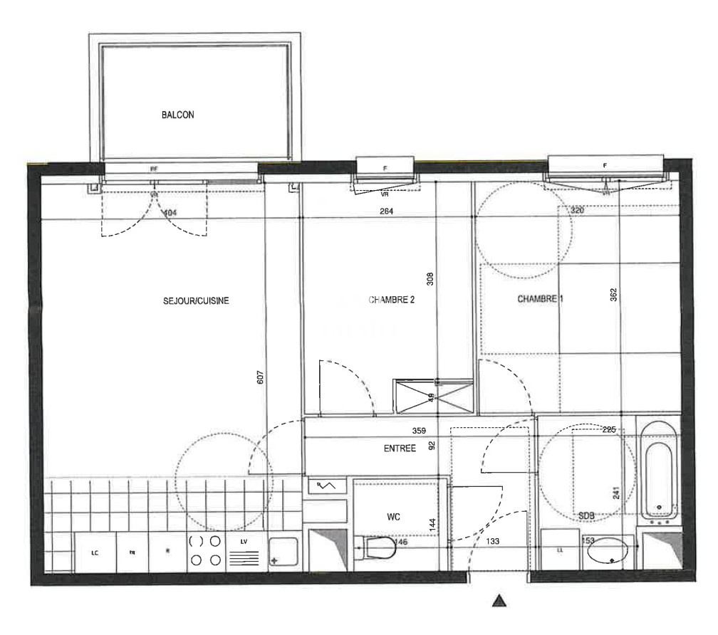 Il comprend une entrée, un séjour avec cuisine ouverte, deux chambres, une salle de bains et un WC séparé. Le séjour donne accès à un balcon de 5,5 m².